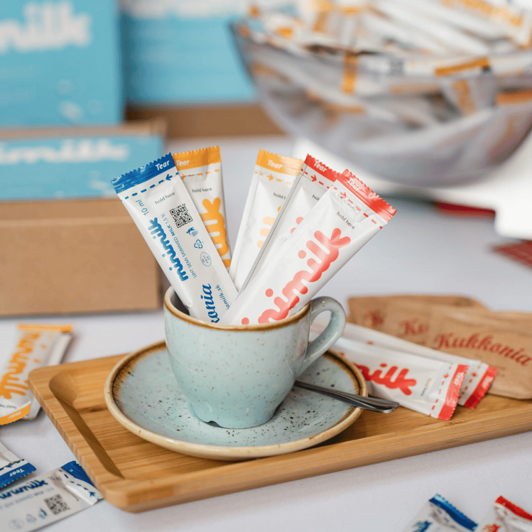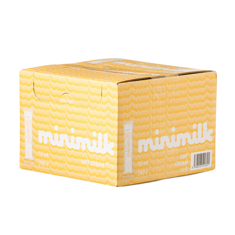 Mleczna kawa gdziekolwiek jesteś? MINIMILK to pierwsza śmietanka porcjowana do kawy w nowoczesnej formie "paluszka". MINIMILK to klasyczna śmietanka 10%, dzięki temu jest trwałym i bardzo wygodnym dodatkiem do kawy lub herbaty, dostępnym w pojedynczych porcjach po 10 ml. Dzięki technologii UHT nie ma potrzeby przechowywania saszetek ze śmietanką w lodówce, co czyni ją higienicznym i bezpiecznym rozwiązaniem.